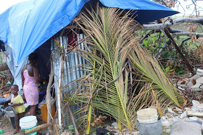 As we drove closer and closer, we saw more and more destruction. Pastor Lex from Mission of Hope described it as looking like a war zone. Each telephone pole was down, and they were not all just uprooted. Some of them snapped in half right in the middle. Power lines littered the ground. Rebar from concrete homes was bent. The trees was either uprooted or damaged. Many crops, such as beans and bananas, were destroyed. The cost of food will soar for people who, in many cases, already cannot afford food. As we drove through the town, we talked about how it just did not seem real. It was quiet, and few people were out. One of the boys from Hands and Feet asked Carleen and I if we had ever been to Port Salut before, and we told him that we had not. He said to us; "It used to be so beautiful."